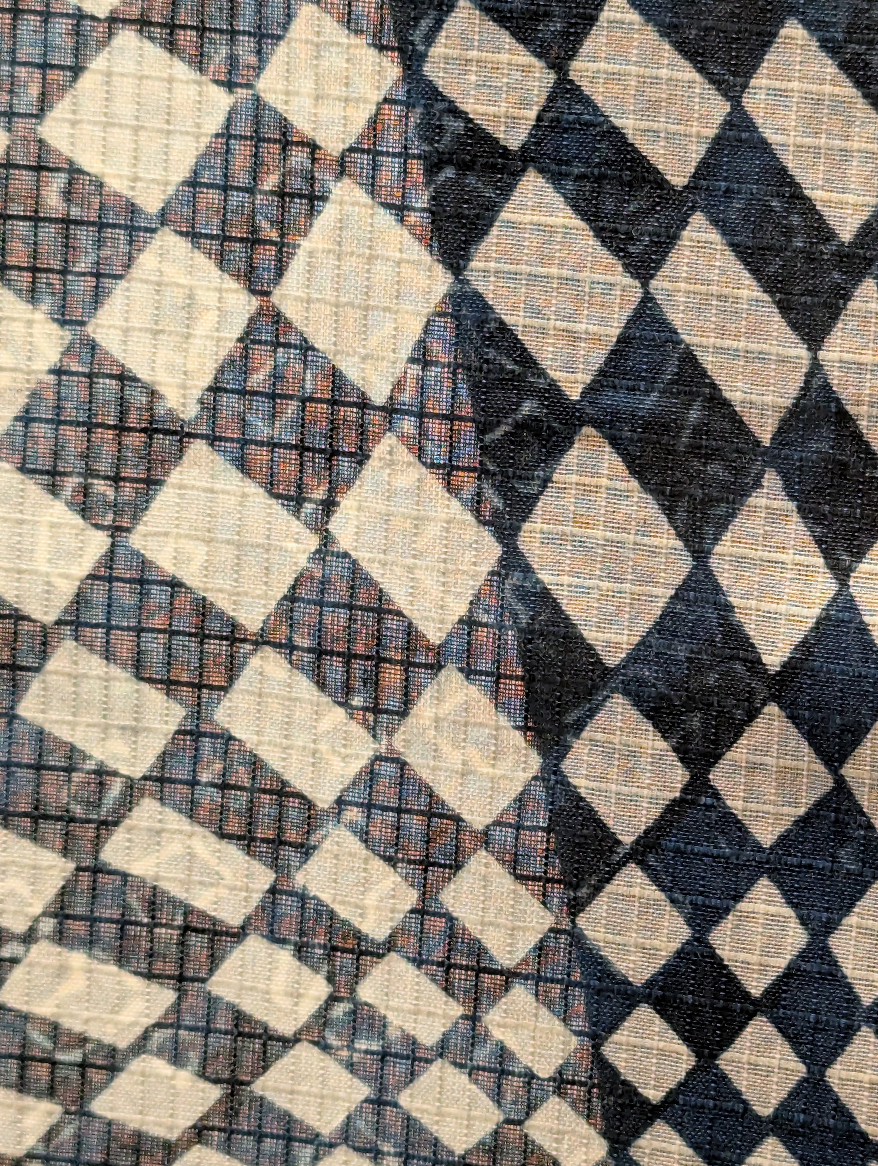 HM: on a visit to Takasaki, Japan – the Takasaki City Dye Plant Botanical Garden, a special exhibition of works by Hama Dyeing Studio: struck by the interplay of printed patterns on woven structure/substrate… (details of works by Kanji and Satoshi Hama)